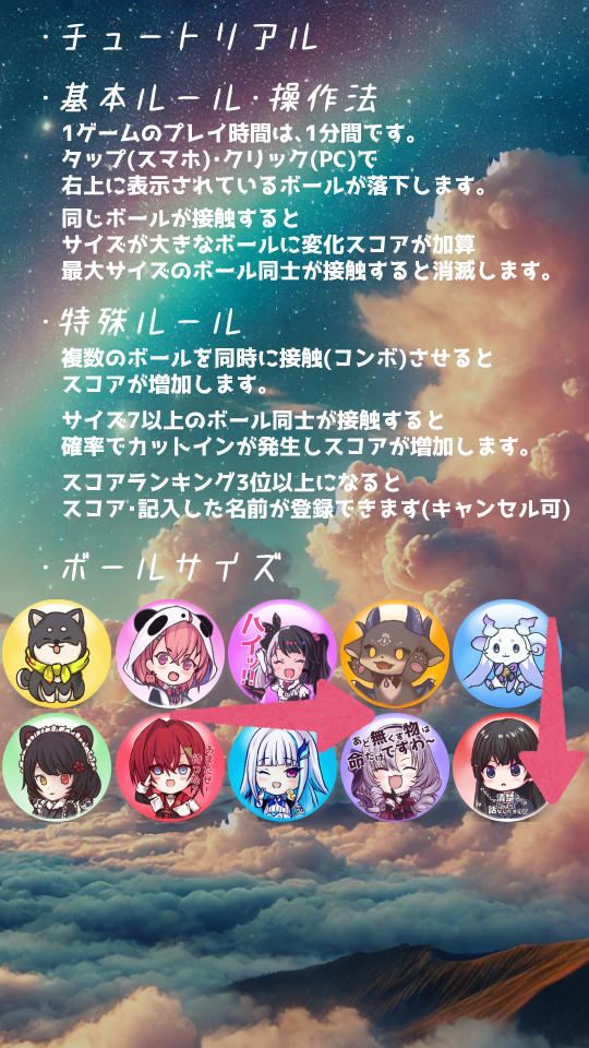 【1回のプレイ時間1分】スコアは、サーバーに記録されます。